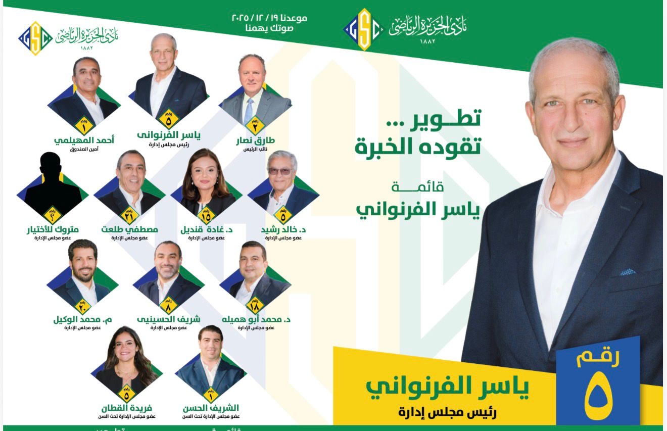 أعلن ياسر أحمد الفرنواني ترشحه رسميًا لمنصب رئيس مجلس إدارة نادي الجزيرة الرياضي (رقم 5) في الانتخابات المقررة في 19 ديسمبر 2025، وذلك على رأس قائمة ا...