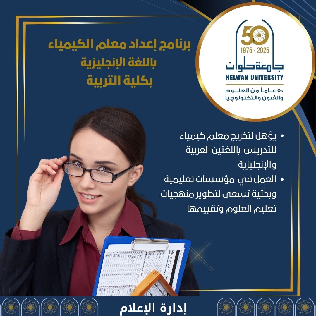 برنامج إعداد معلم الكيمياء باللغة الإنجليزية بجامعة حلوان يجمع بين التميز الأكاديمي وفرص العمل الدولية الأربعاء 2 يوليو, 2025