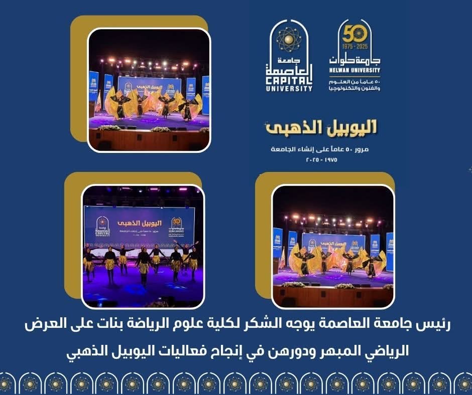 رئيس جامعة العاصمة يوجه الشكر لكلية علوم الرياضة بنات على العرض الرياضي المبهر ودورهن في إنجاح فعاليات اليوبيل الذهبي الثلاثاء 30 ديسمبر, 2025