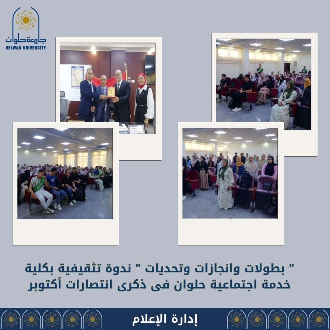 " بطولات وانجازات وتحديات " ندوة تثقيفية بكلية خدمة اجتماعية حلوان فى ذكرى انتصارات أكتوبر الأربعاء 22 أكتوبر, 2025