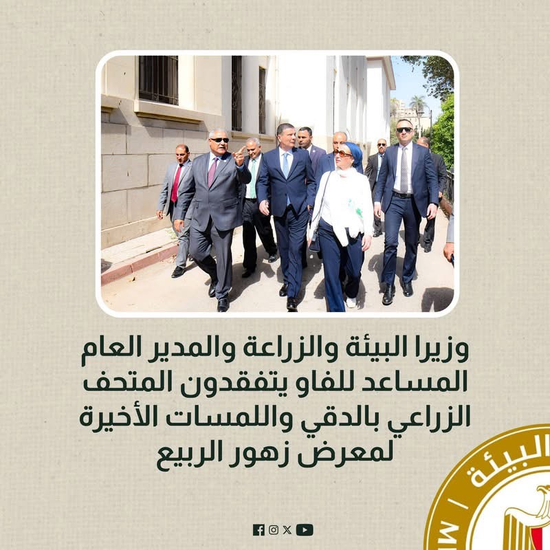 وزيرا البيئة والزراعة والمدير العام المساعد للفاو يتفقدون المتحف الزراعي بالدقي واللمسات الأخيرة لمعرض زهور الربيع الجمعة 4 أبريل, 2025