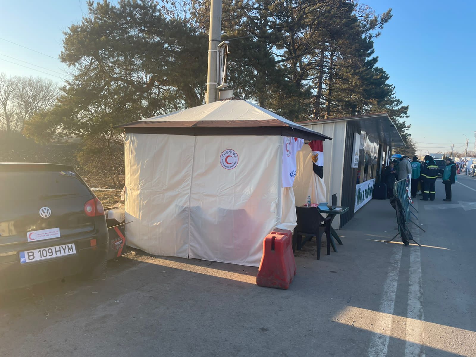 فريق الهلال الأحمر المصري الإغاثي الدولي الثاني يقيم أول مركز خدمة إغاثية مصرية على معبر "سيريت" عند الحدود الرومانية- الأوكرانية لاستقبال المصريين الاثنين 14 مارس, 2022