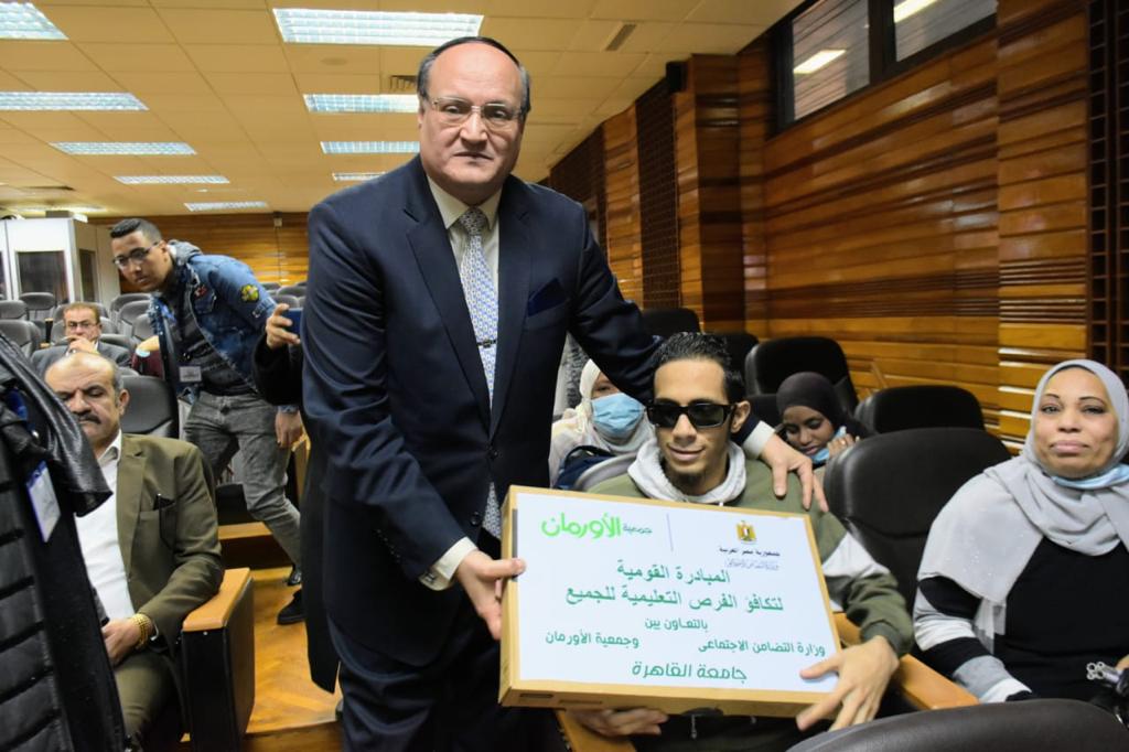 برعاية د. الخشت رئيس جامعة القاهرة احتفالية لتوزيع أجهزة "لاب توب" للطلاب ذوي الهمم بجامعة القاهرة الاثنين 14 مارس, 2022