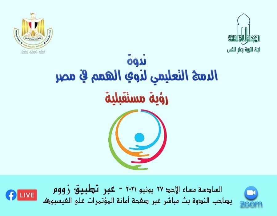 أونلاين عبر زووم ندوة: "الدمج التعليمي لذوي الهمم في مصر:رؤية مستقبلية".. الأحد الجمعة 25 يونيو, 2021