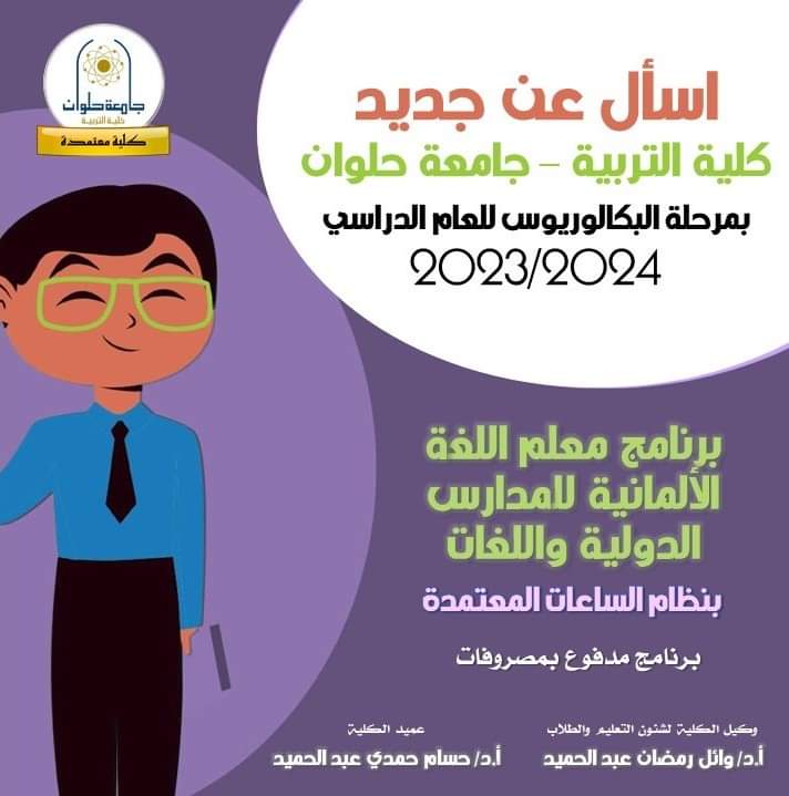 تعرف على برنامج إعداد معلم اللغة الألمانية للمدارس الدولية واللغات بكلية التربية جامعة حلوان الأربعاء 26 يوليو, 2023
