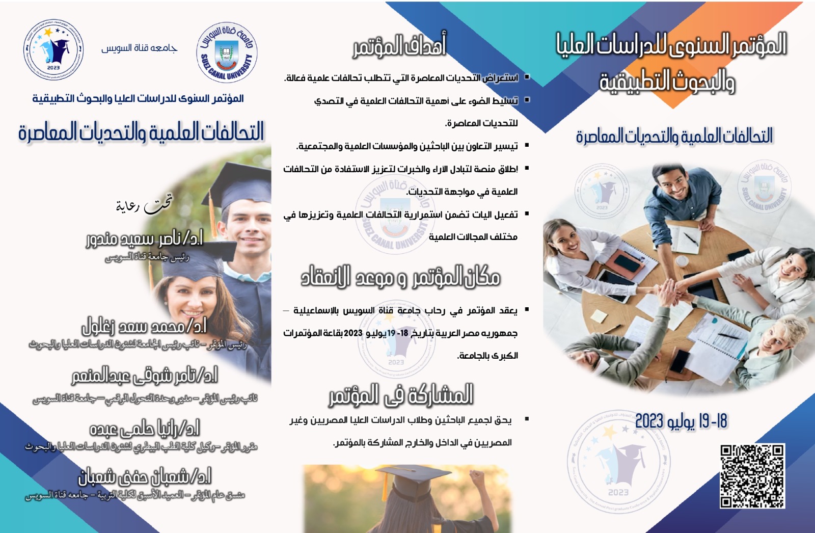 18 و 19 يوليو ..انطلاق فاعليات المؤتمر السنوي للدراسات العليا والبحوث التطبيقية بجامعة قناة السويس السبت 15 يوليو, 2023