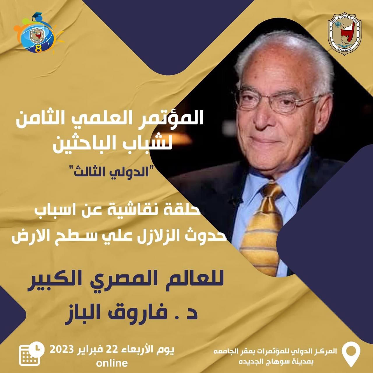 المؤتمر العلمي الثامن الدولي الثالث لشباب الباحثين بجامعة سوهاج يستضيف العالم المصري فاروق الباز الاثنين 20 فبراير, 2023