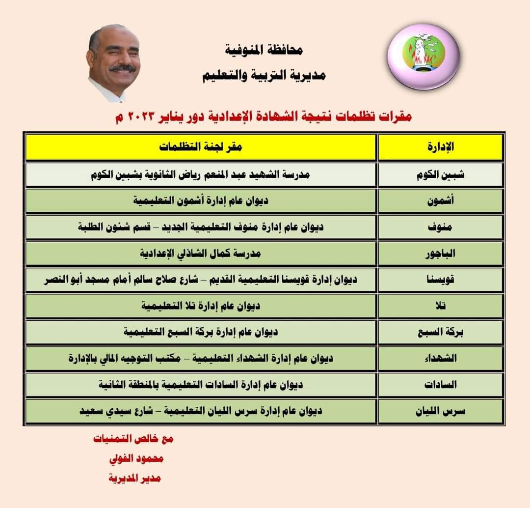 تعليم المنوفية فتح باب التظلمات لشهادة الاعدادية الترم الاول غدا ولمدة ١٥ يومآ متصلة الأربعاء 8 فبراير, 2023