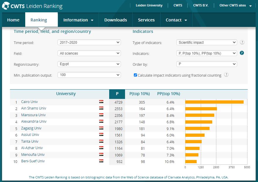 لأول مرة جامعة المنوفية في التصنيف الدولي الهولندي «ليدن»، (CWTS Leiden U) لعام 2022 السبت 25 يونيو, 2022