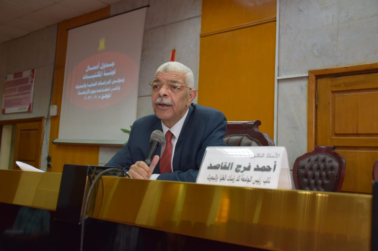 نائب رئيس جامعة المنوفية الدراسات العليا يعقد إجتماع مجالس الدراسات العليا والمكتبات والمكتبية المركزية الأربعاء 8 يونيو, 2022