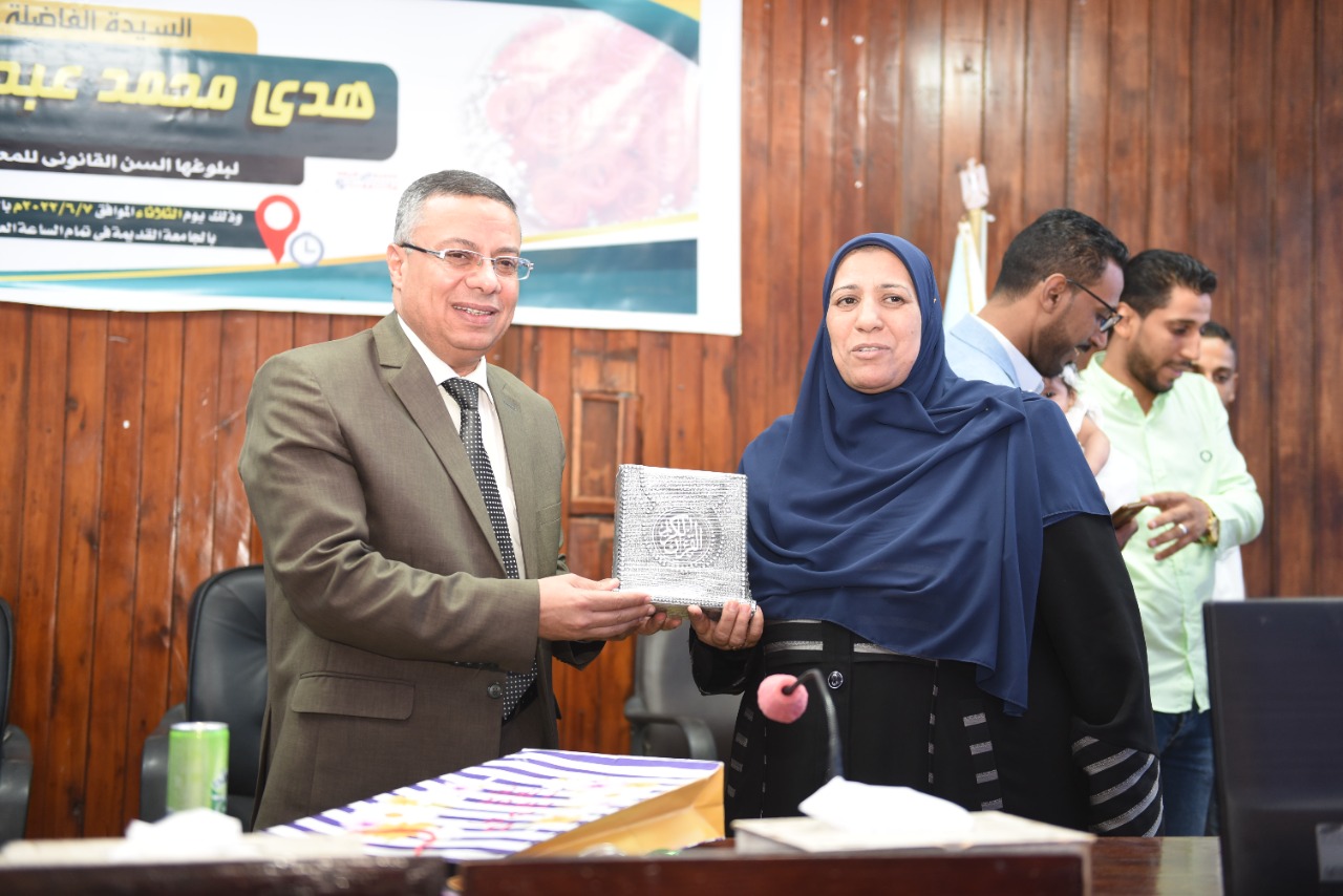 تكريم كبير سكرتارية بإدارة التوجيه المالي والإداري بجامعة سوهاج لبلوغها السن القانونية الأربعاء 8 يونيو, 2022