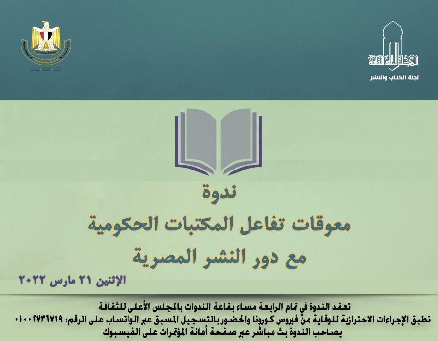 الأعلى للثقافة يناقش "معوقات تفاعل المكتبات الحكومية مع دور النشر المصرية".. اليوم الاثنين 21 مارس, 2022
