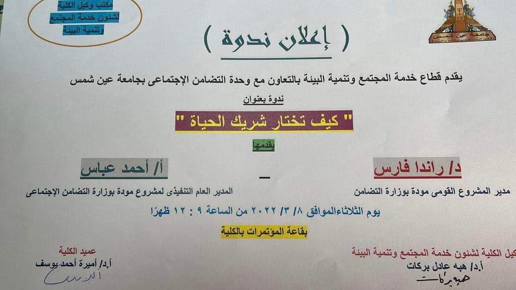 نائب رئيس جامعة أسيوط تشهد فعاليات ندوة بعنوان " دور المشروعات الصغيرة في تنمية قدرات الشباب وريادة الأعمال " الاثنين 7 مارس, 2022