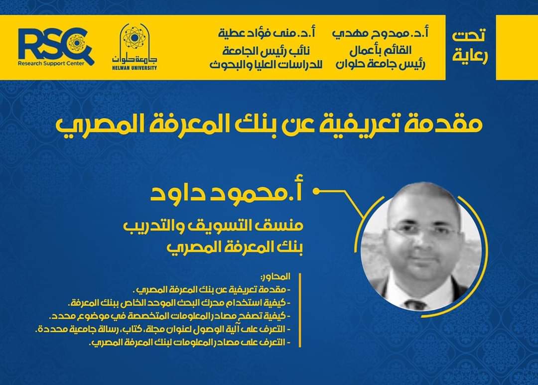كيفية استخدام محرك البحث الموحد الخاص ببنك المعرفة المصري .. ضمن فعاليات ورشة عمل بجامعة حلوان الثلاثاء 30 نوفمبر, 2021