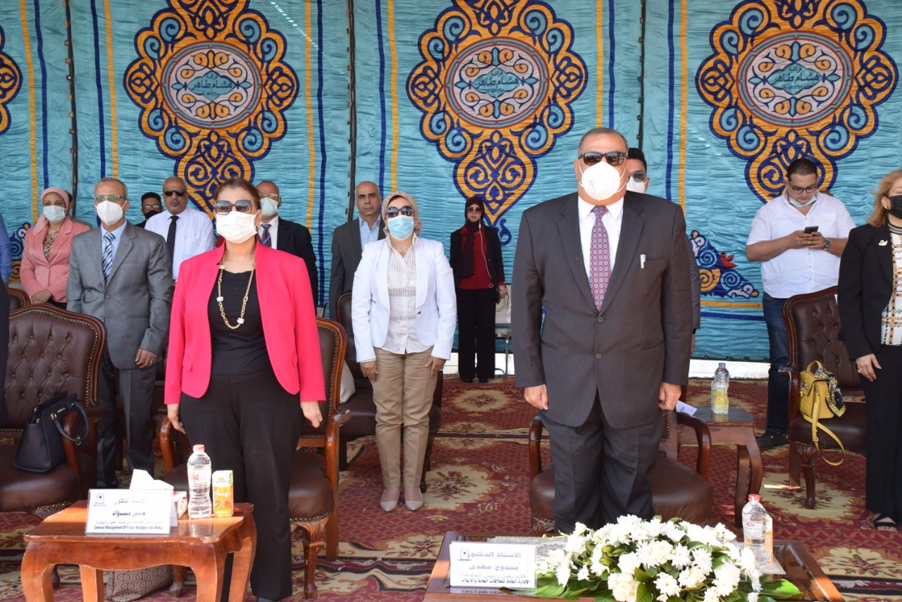 رئيس جامعة الزقازيق يشارك أبنائه الطلاب الجدد والقدامى بتحية العلم والاحتفال ببداية العام الدراسى الجديد بكليتى الهندسة والصيدلة السبت 9 أكتوبر, 2021