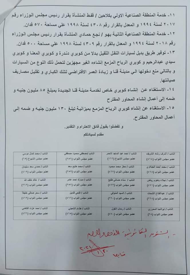 20 نائبًا يطالبون بإنشاء محور عرضى بمدينة قنا لربط الطريق الصحراوى الغربى بالشرقى الخميس 21 يناير, 2021