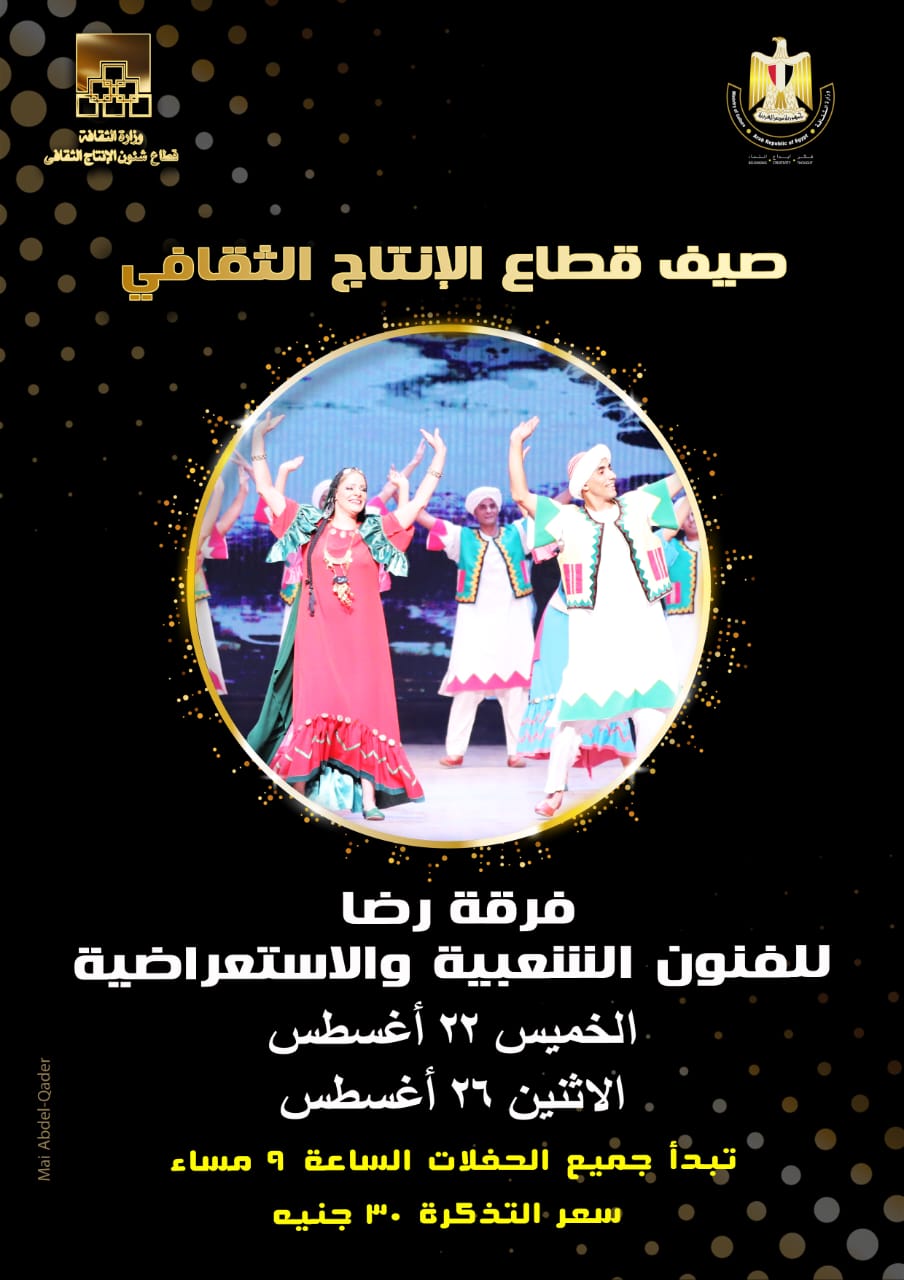 غدا.. فرقة "رضا للفنون الشعبية" تحيى الليلة الرابعة لبرنامج صيف الإنتاج الثقافى الأربعاء 21 أغسطس, 2024