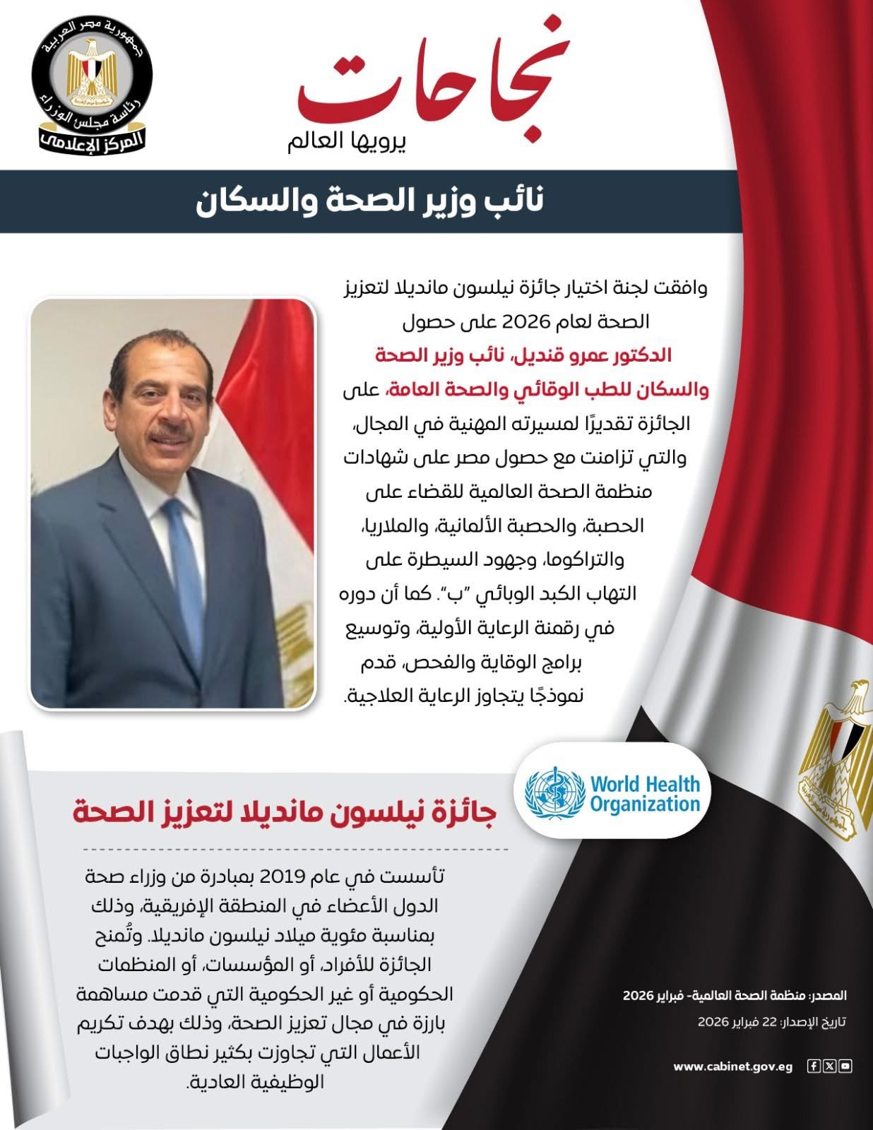 الصحة: 3.7 مليون سيدة استفدن من الفحص الشامل ضمن مبادرة العناية بصحة الأم والجنين الأحد 22 فبراير, 2026