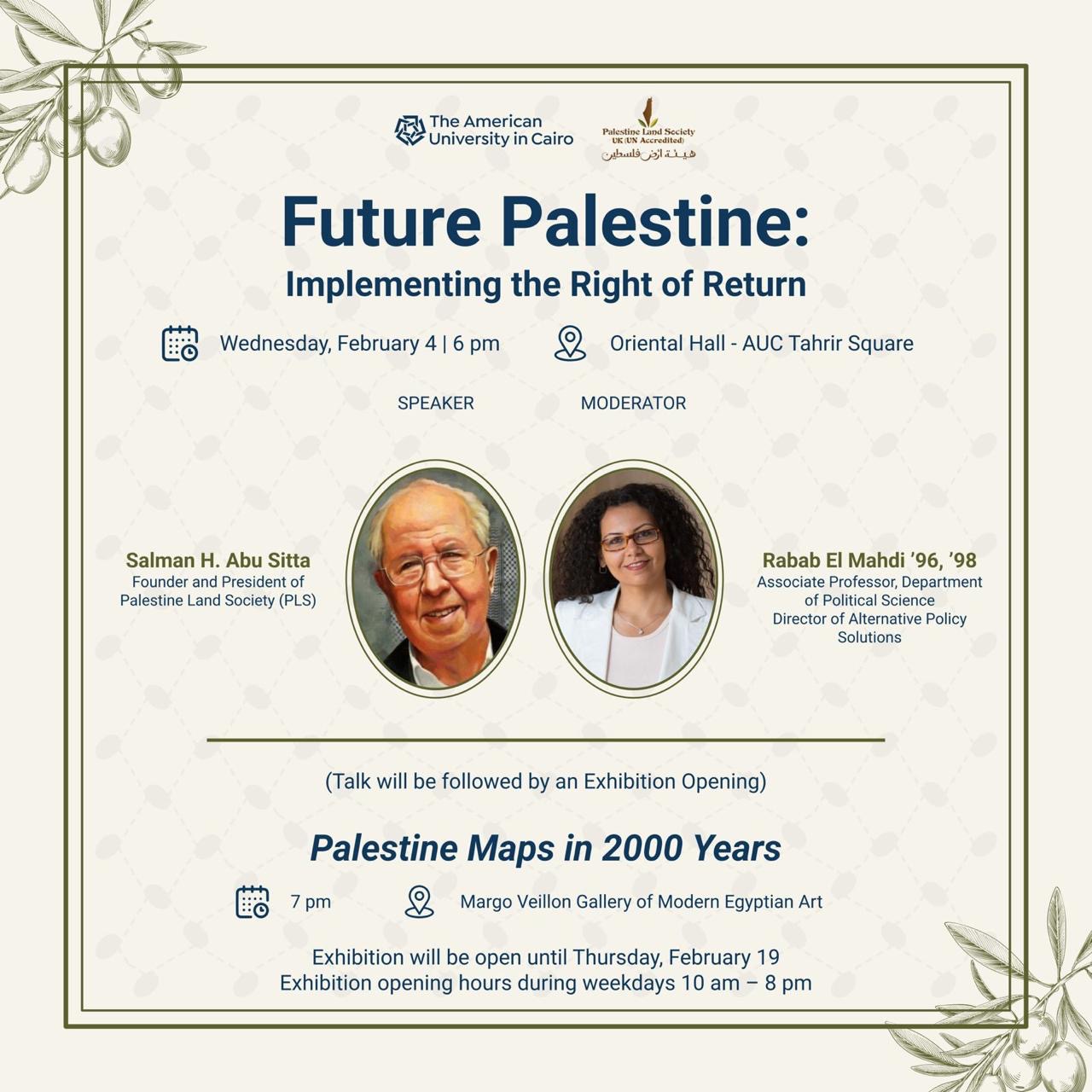 الجامعة الأمريكية بالقاهرة تستضيف المؤرخ والباحث سلمان أبو ستة ليتحدث عن فلسطين المستقبل الخميس 29 يناير, 2026