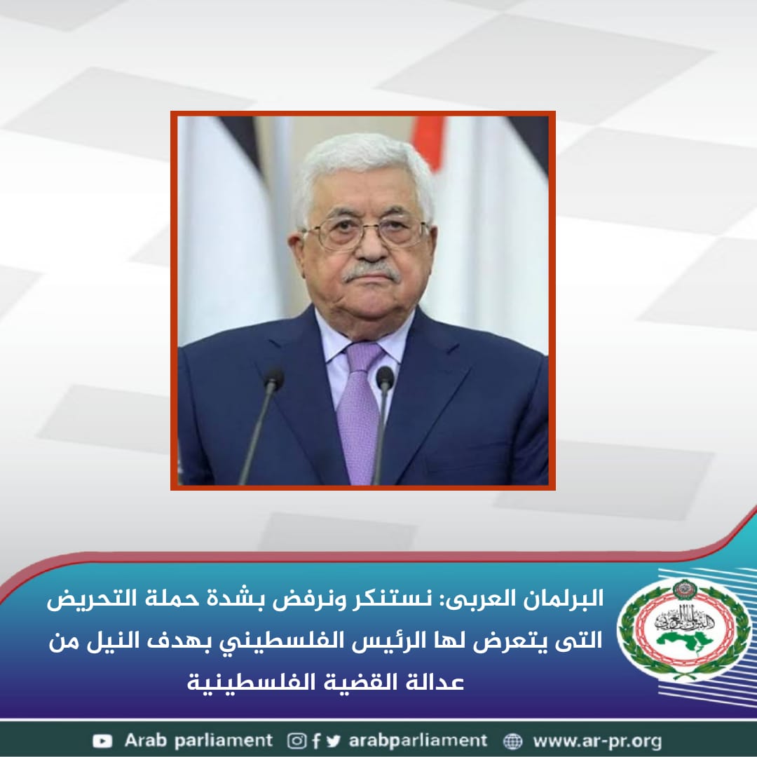 *البرلمان العربى: نستنكر ونرفض بشدة حملة التحريض التى يتعرض لها الرئيس الفلسطيني بهدف النيل من عدالة القضية الفلسطينية* الاثنين 22 أغسطس, 2022