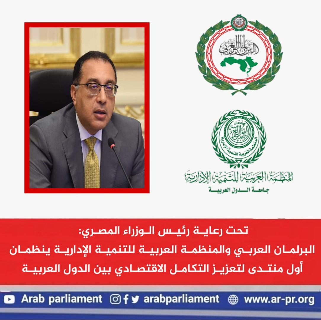 برعاية رئيس الوزراء المصري*: *البرلمان العربي والمنظمة العربية للتنمية الإدارية ينظمان أول منتدى لتعزيز التكامل الاقتصادي بين الدول العربية الخميس 19 مايو, 2022