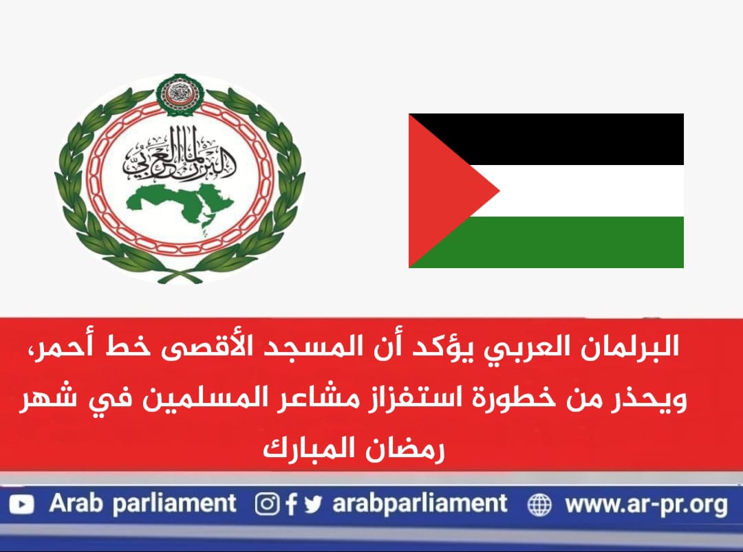 *البرلمان العربي يؤكد أن المسجد الأقصى خط أحمر …ويحذر من خطورة استفزاز مشاعر المسلمين في شهر رمضان المبارك* الأربعاء 13 أبريل, 2022