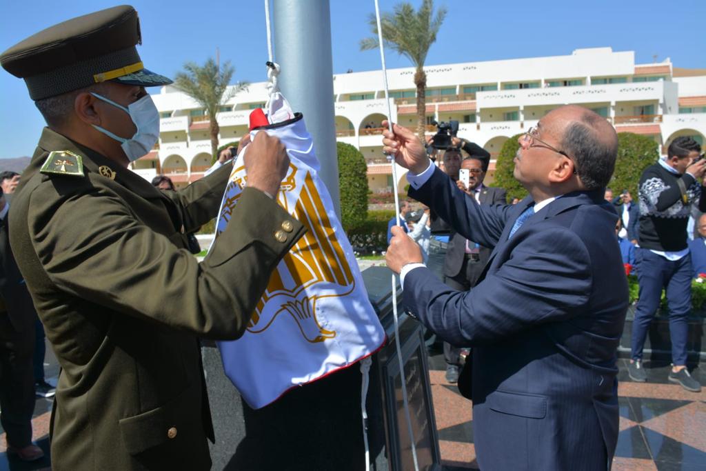 وزير التنمية المحلية يرفع العلم المصري على أرض طابا بمناسبة الاحتفال بالعيد القومي لجنوب سيناء الجمعة 18 مارس, 2022