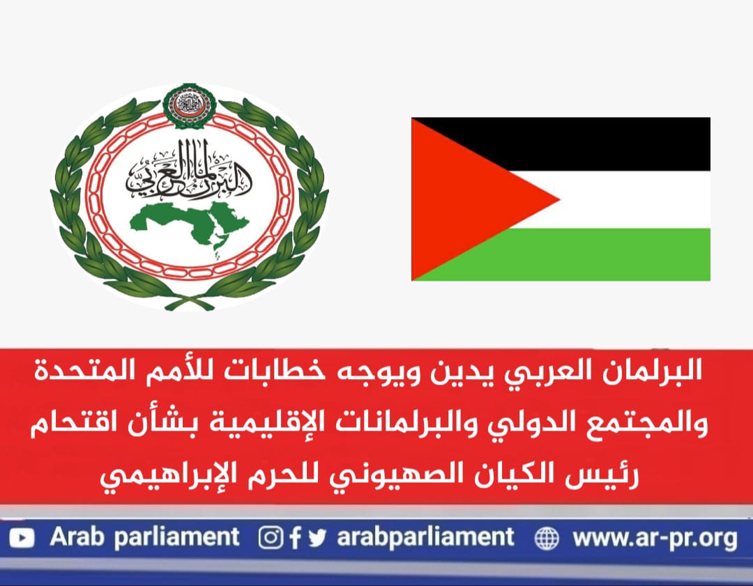 *البرلمان العربي يدين ويوجه خطابات للأمم المتحدة والمجتمع الدولي والبرلمانات الإقليمية بشأن اقتحام رئيس الكيان الصهيوني للحرم الإبراهيمي* الثلاثاء 30 نوفمبر, 2021