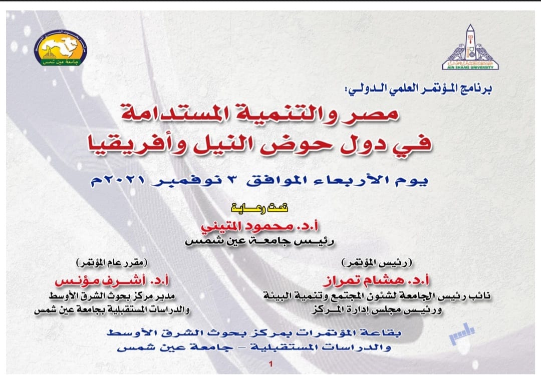 "مصر والتنمية المستدامة في دول حوض النيل وأفريقيا" مؤتمر دولي بمركز بحوث الشرق الأوسط الثلاثاء 2 نوفمبر, 2021