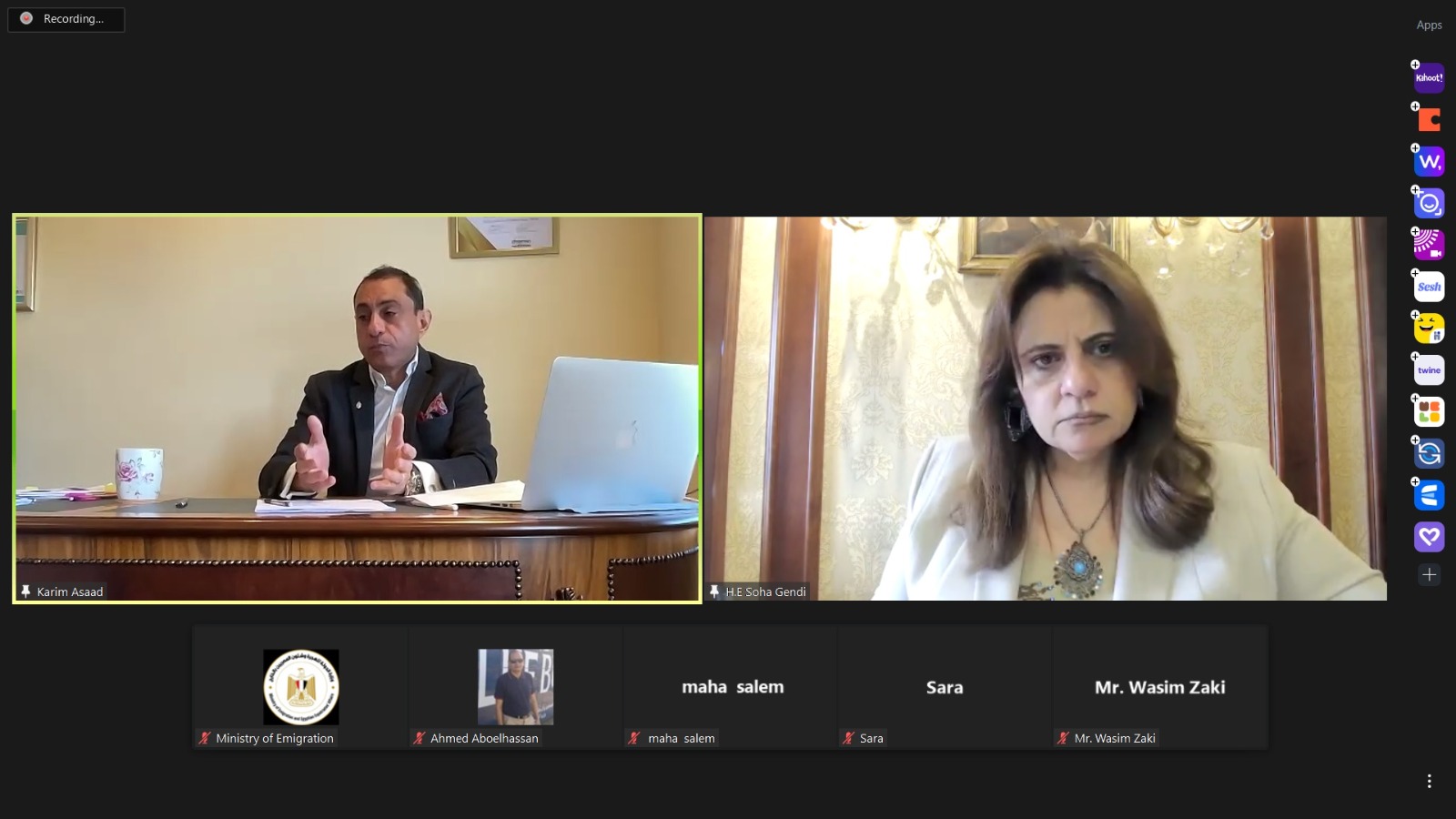 وزيرة الهجرة تلتقي المستثمر المصري بالخارج كريم أسعد لبحث تعزيز استثماراته بمصر الأحد 12 فبراير, 2023