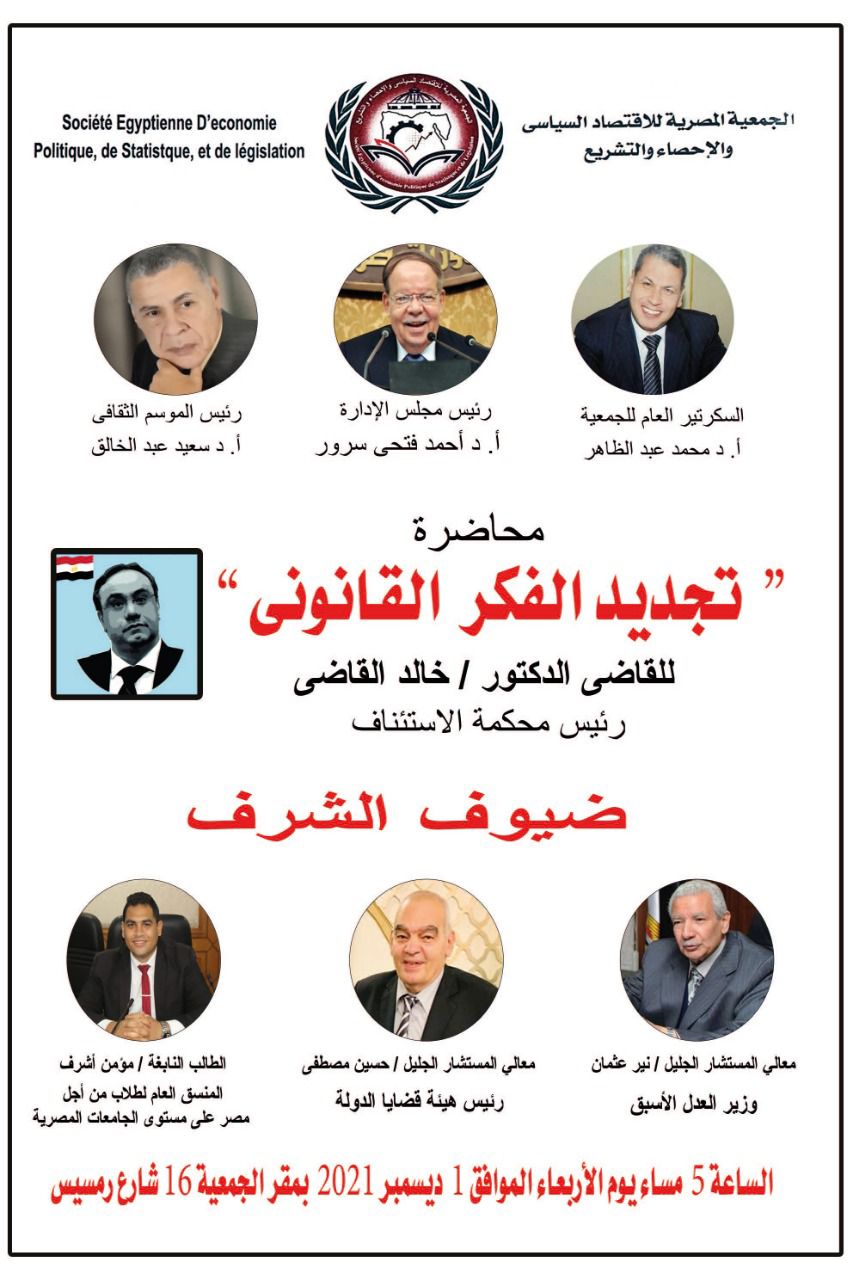 تجديد الفكر القانوني في محاضرة لخالد القاضي بجمعية الاقتصاد والتشريع الأربعاء المقبل الاثنين 29 نوفمبر, 2021