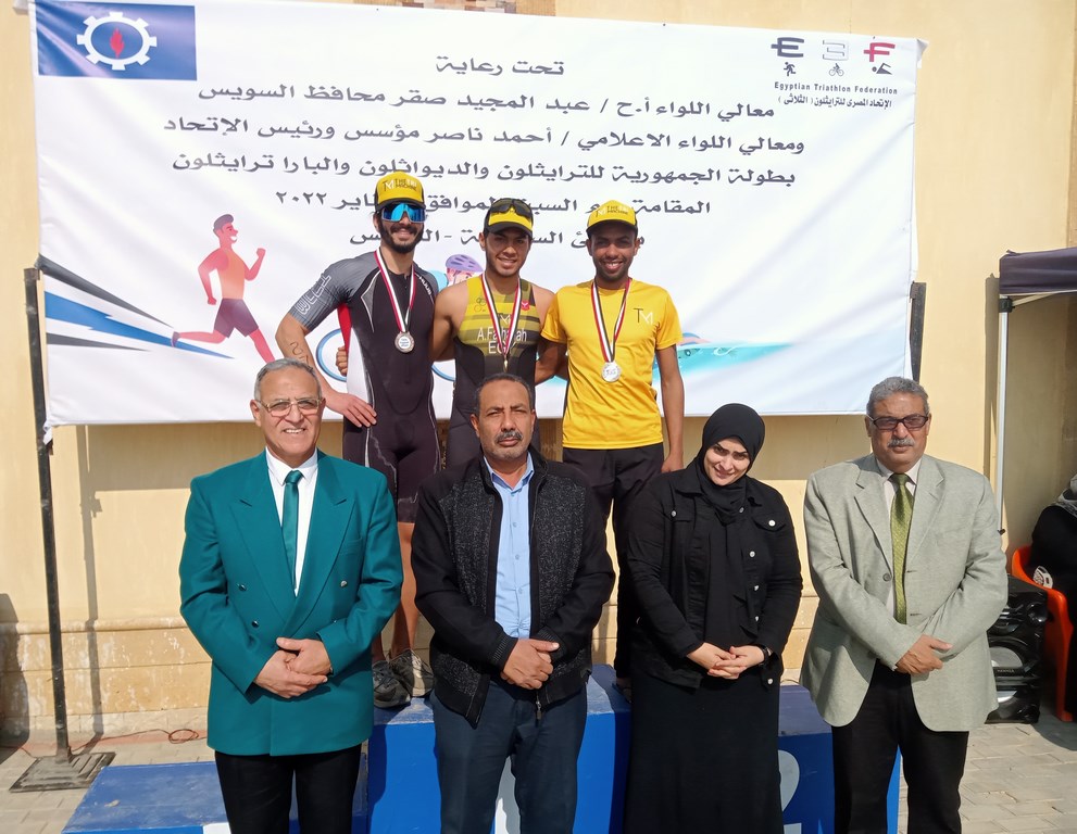 تسليم الميداليات للفائزين في ختام بطولة الجمهورية للعبة الترايثلون بشاطئ السوايسة السبت 8 يناير, 2022