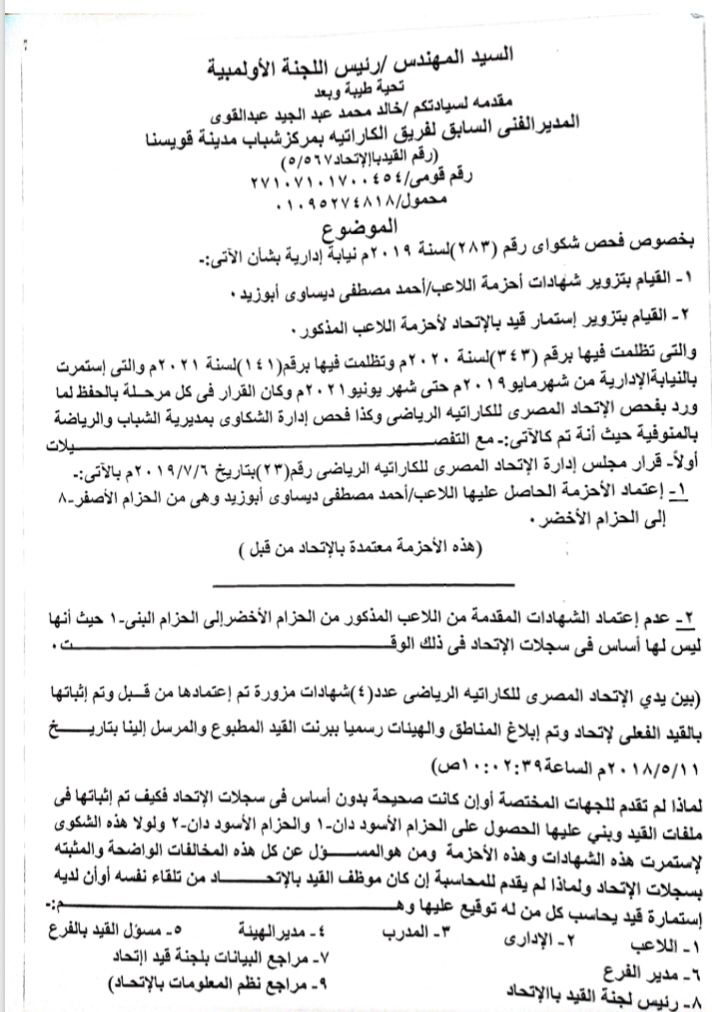بعد ثبوت تزوير الكاراتيه .. ملف القضية بالمستندات على طاولة الشباب والرياضة واللجنة الأوليمبية الجمعة 1 أكتوبر, 2021